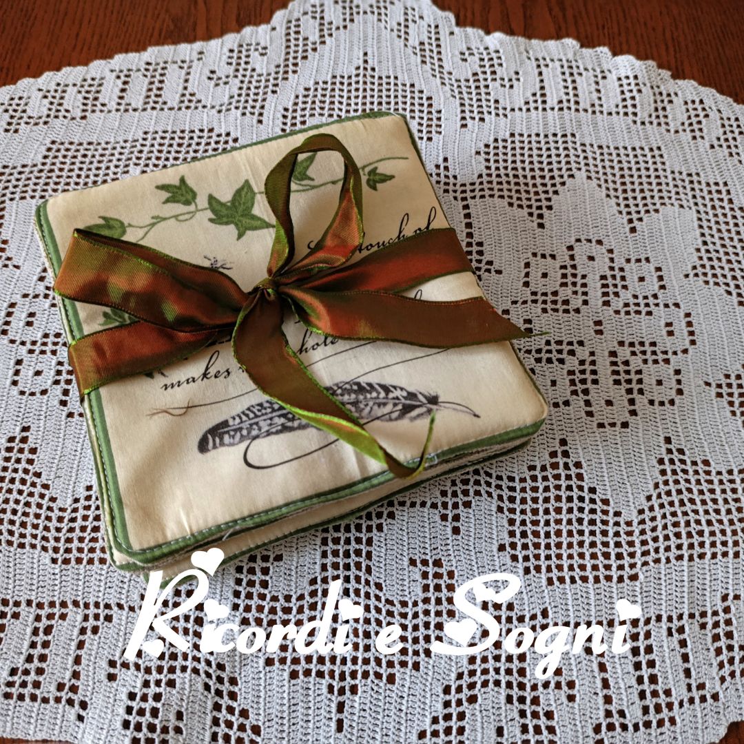 Utilizzabili come presine o sotto tazza/sotto pentola. Non hanno il gancetto per essere appese, Misure cm 17×17 circa.