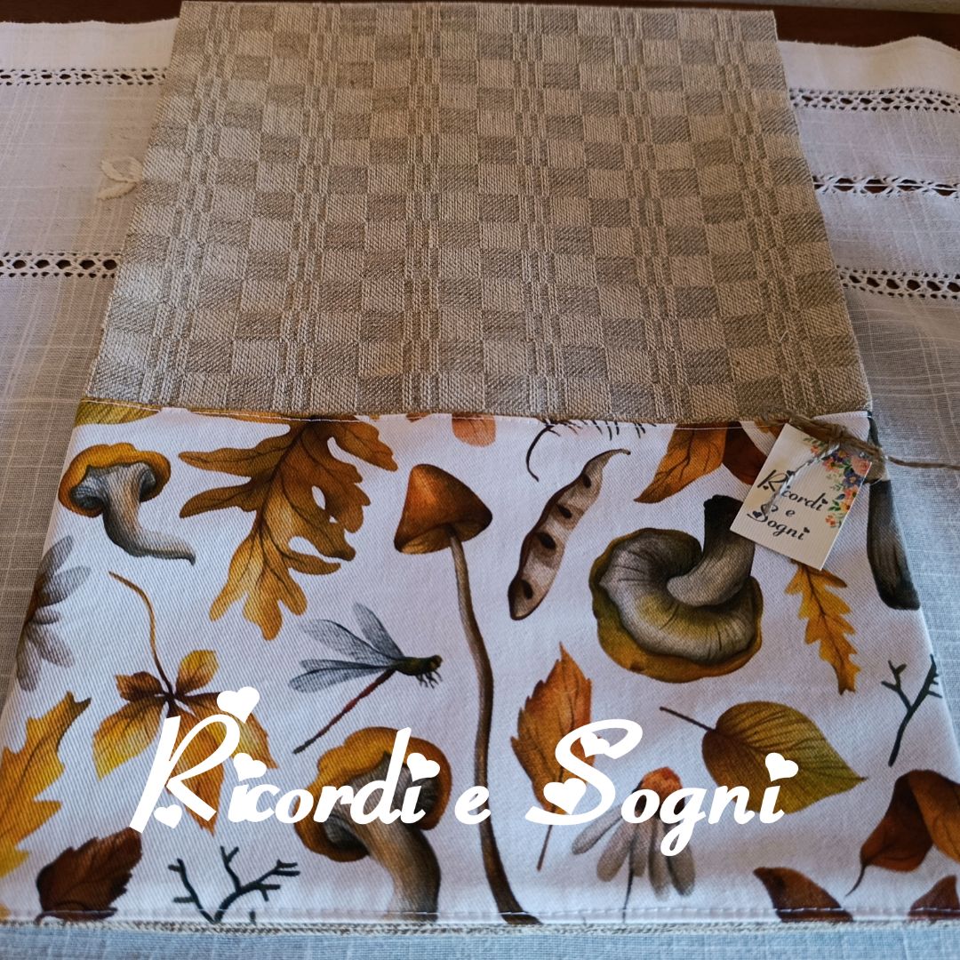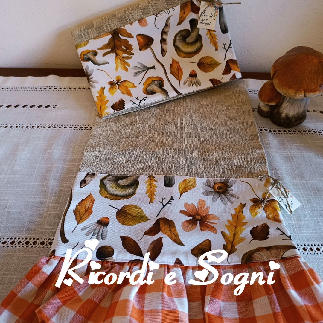 PEZZO UNICO Lo strofinaccio di questo set è in misto lino e cotone e misura cm. 49 x70, ha un abbassamento in misto cotone a quadri bianchi e verdi alto cm. 10,5.